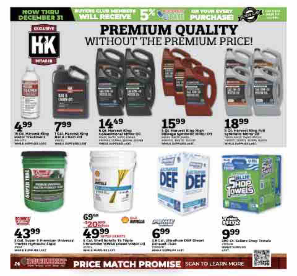 5 Qt. Harvest King Full Synthetic Motor Oil 0W20, 5W20, 5W30, 10W30. #353971, 353973, 353975, 353979 WHILE SUPPLIES LAST.